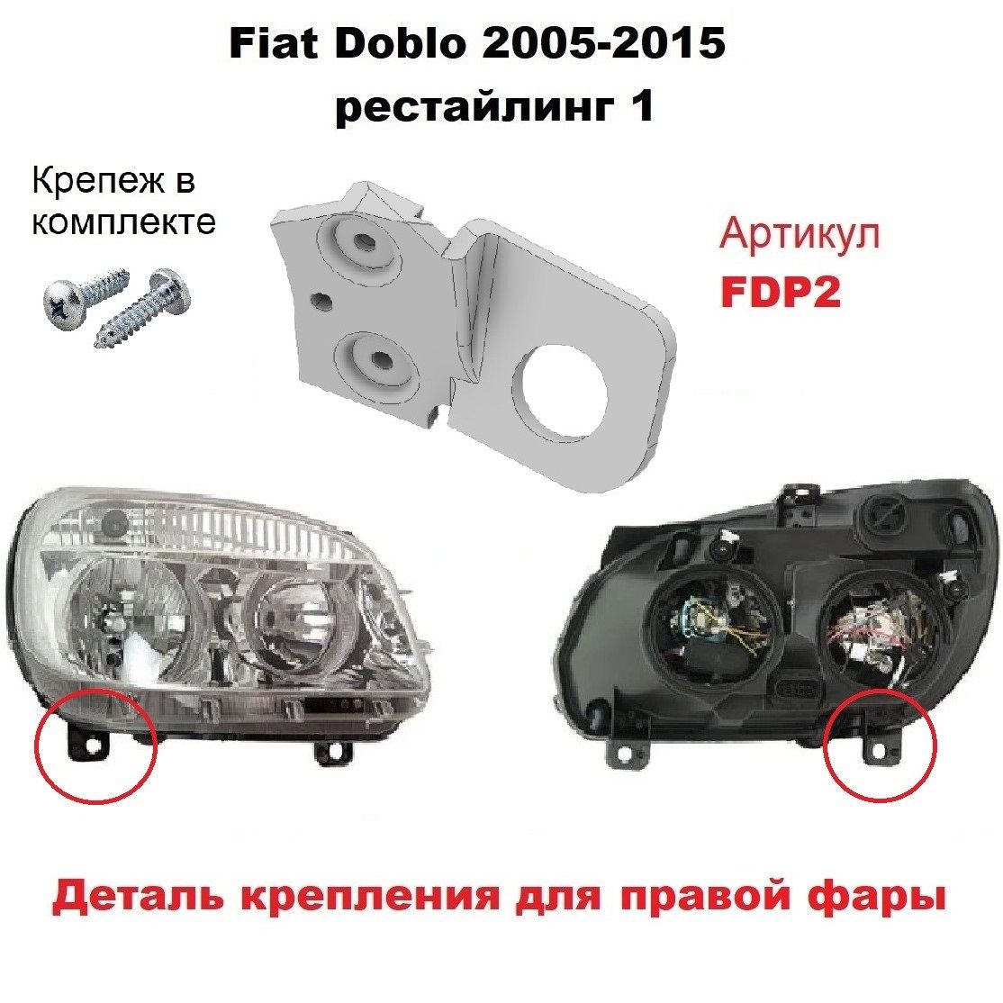 Ремонтное крепление фары, шурупы для фиксации.