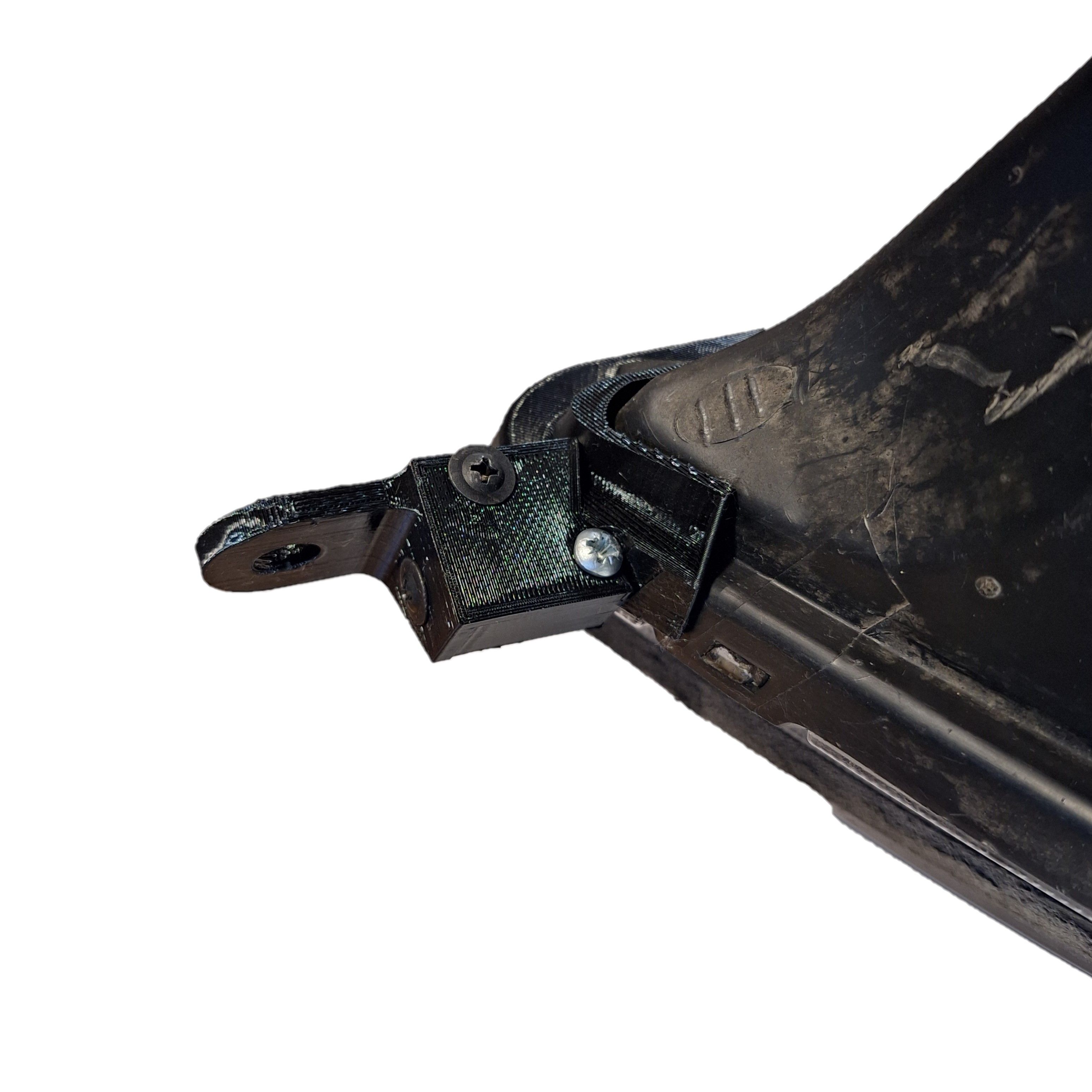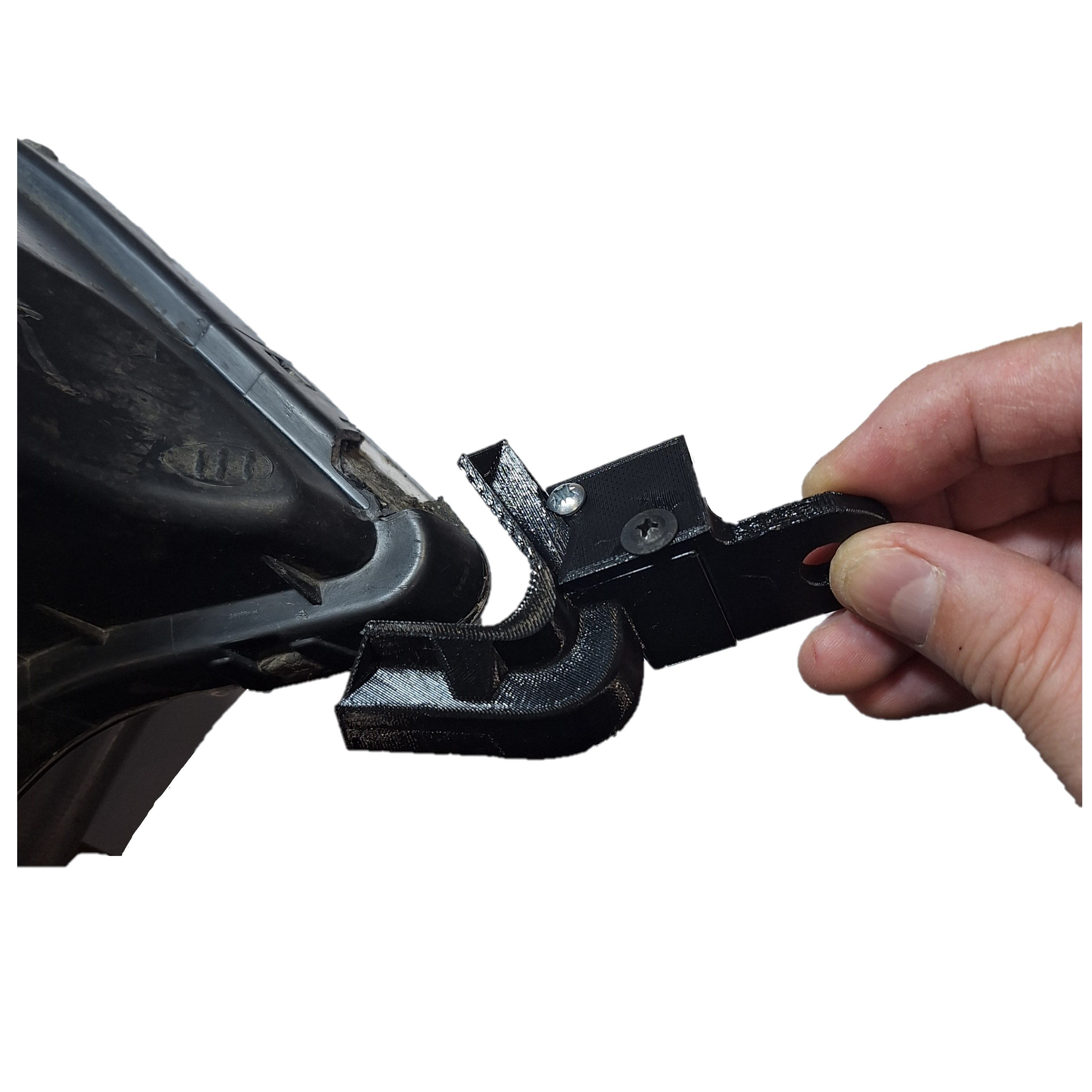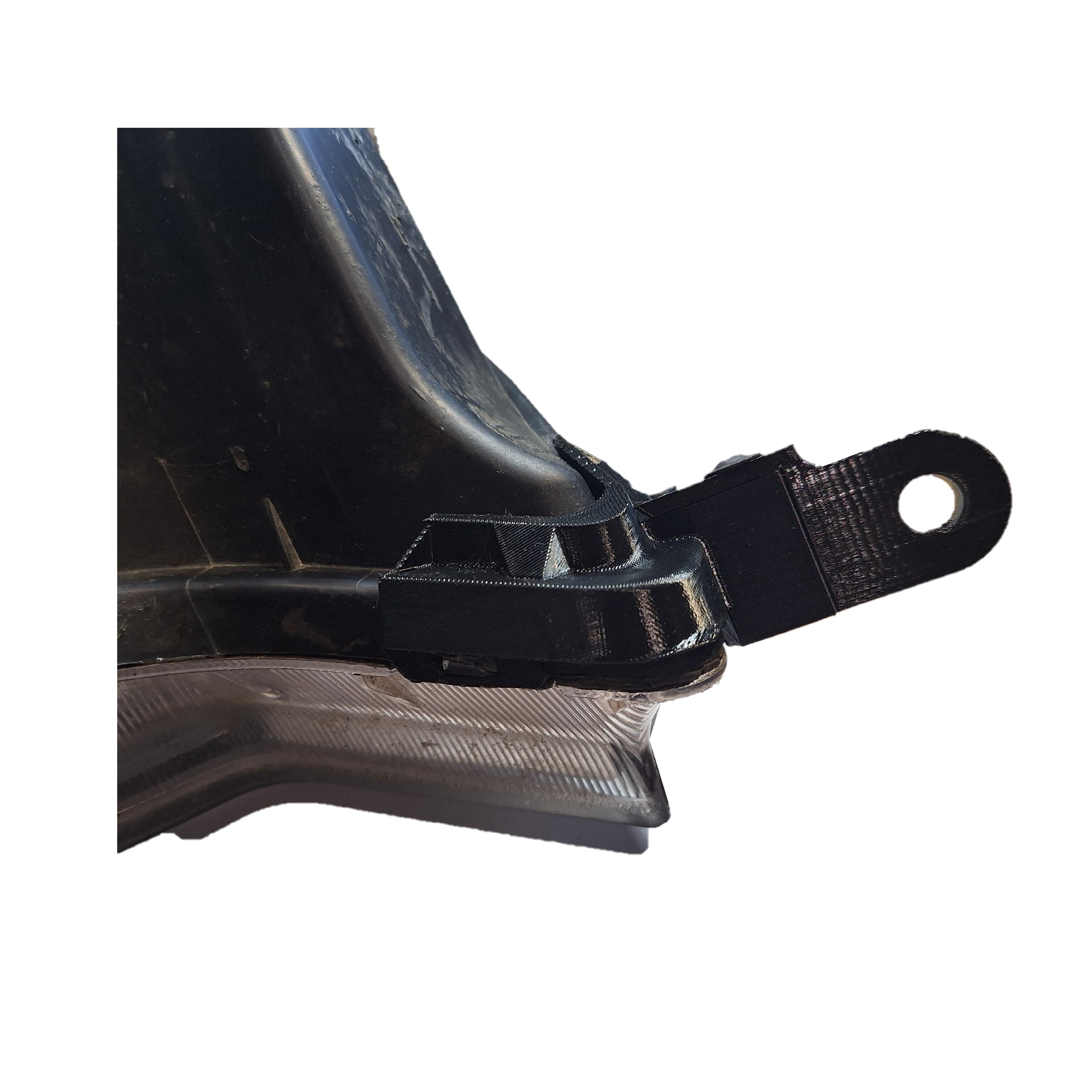 Ремонтное крепление состоит из двух частей, каждое из который имеет свой вариант установки. Если у Вас штатное место под установку ремкомлекта утрачено, (выглядит как кубик), то восстановить кронштейн можно только приклеив ремонтное крепление к корпусу фары на клей с последующей приваркой краев крепления к корпусу фары паяльником. Перед установкой с корпуса фары удаляются остатки сломанного крепления строительным ножем.