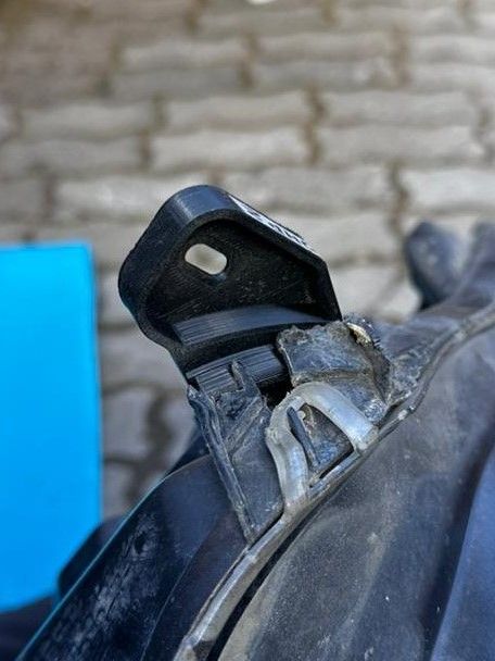 Для установки ремонтного кронштейна необходимо удалить поврежденное крепление фары, для чего примерить ремонтный кронштейн к месту установки, срезать мешающие остатки оригинального крепления строительным ножом. Кронштейн устанавливается в заводские посадочные места и фиксируется саморезами