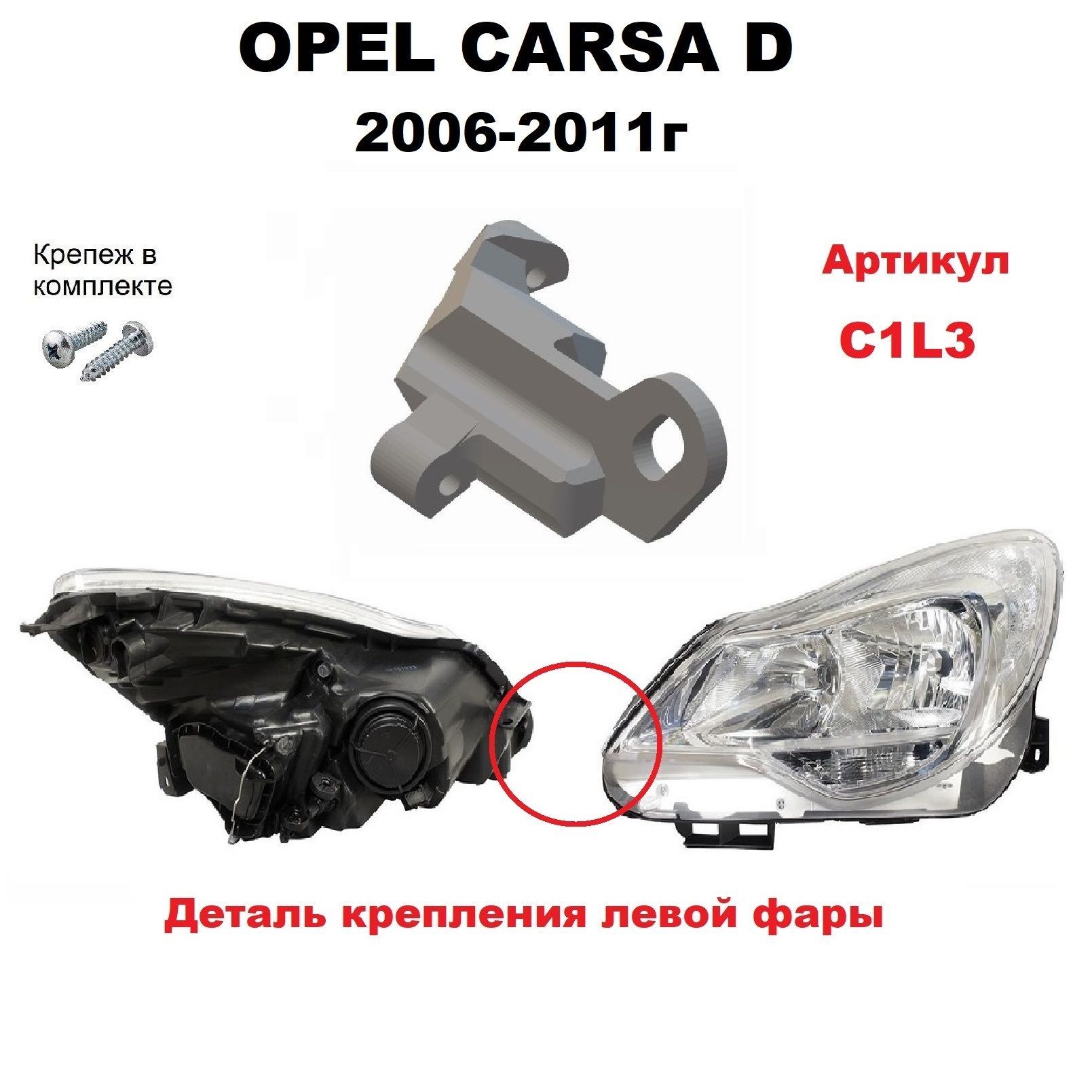 Предназначен для ремонта оригинальной автомобильной фары Opel Corsa D 2006-2011 года выпуска. Устанавливается в штатные крепежные места, фиксируется шурупами.