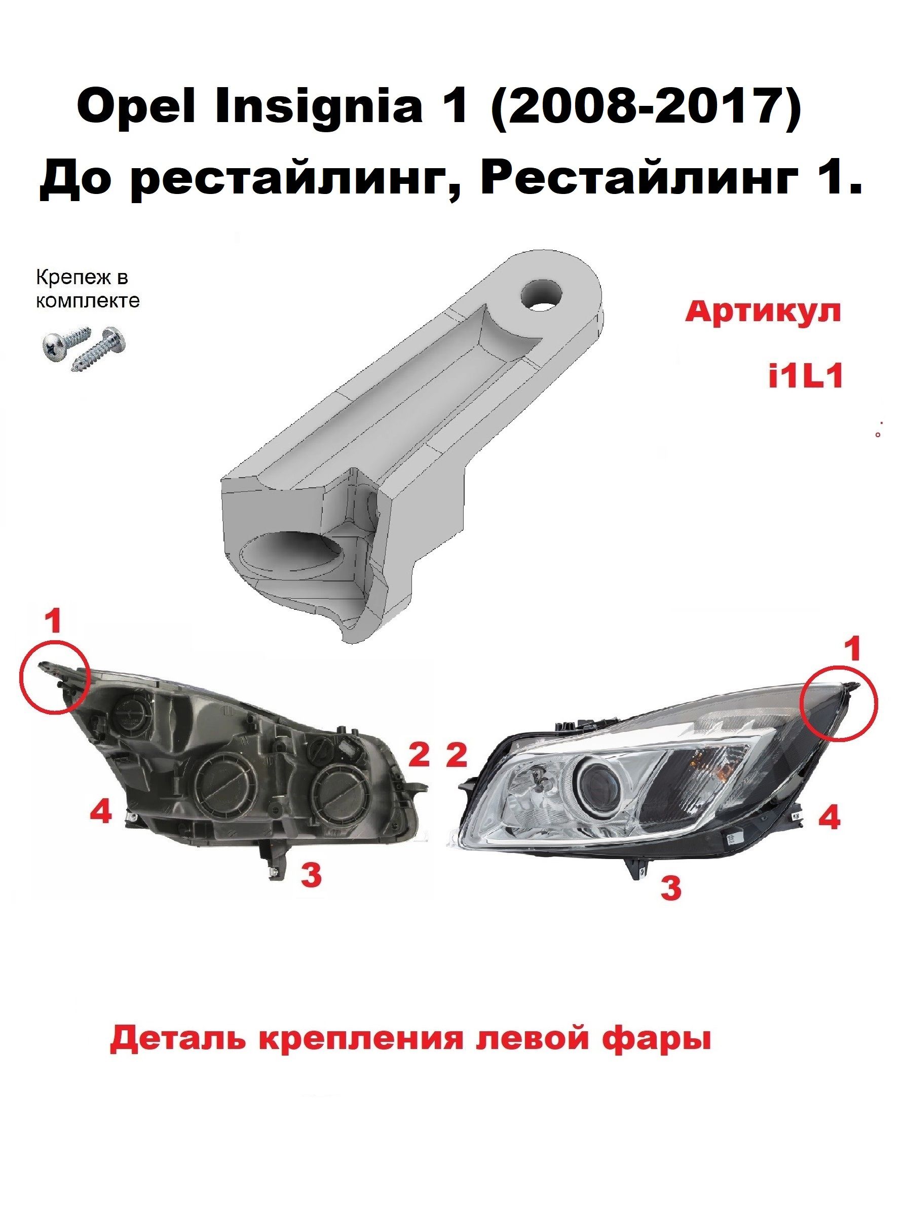 Предназначен для ремонта оригинальной автомобильной фары Opel Insignia 1 (2008 - 2017) ДО рестайлинг и рестайлинг 1. Устанавливается в штатные крепежные места, фиксируется шурупами.