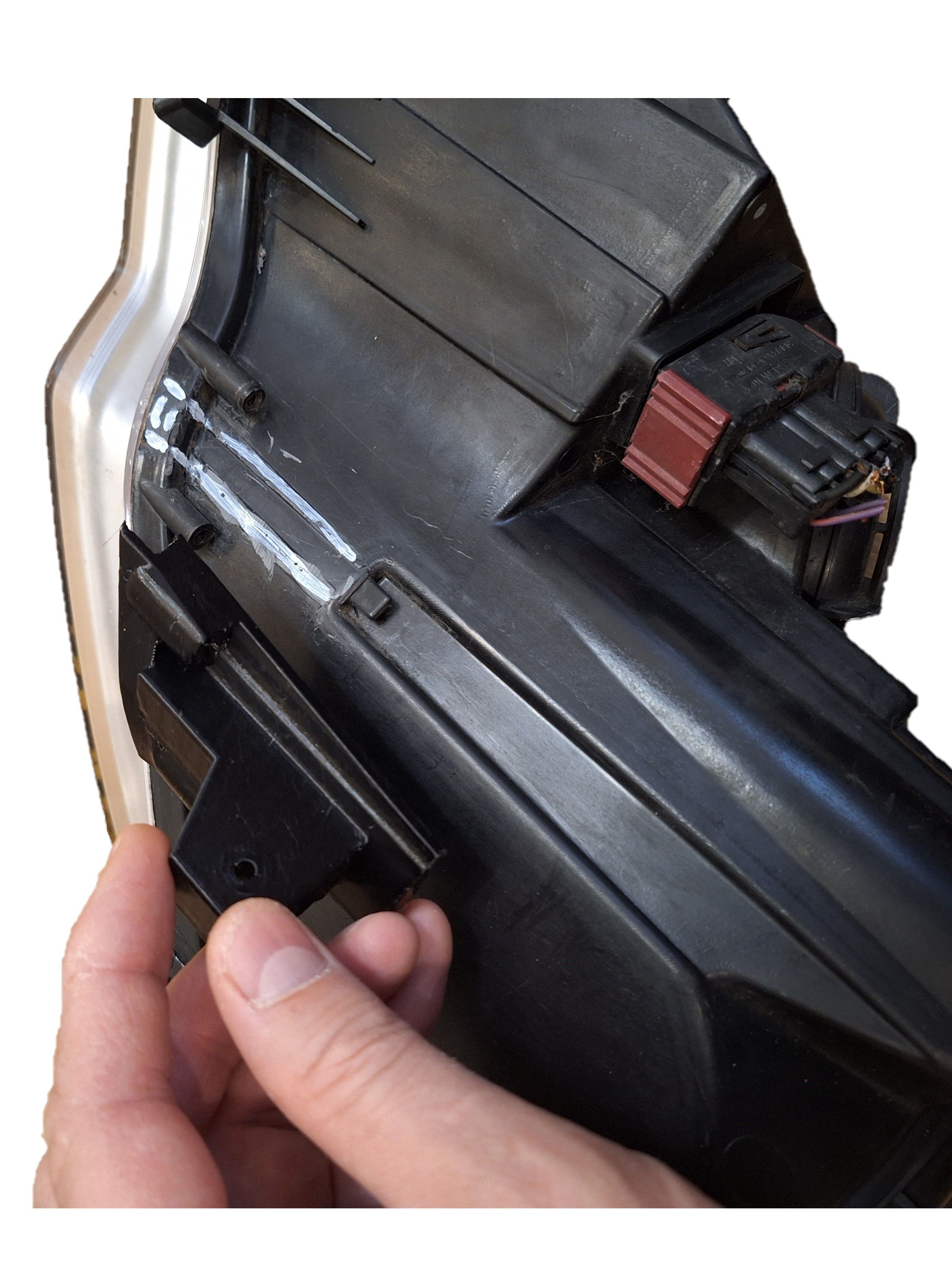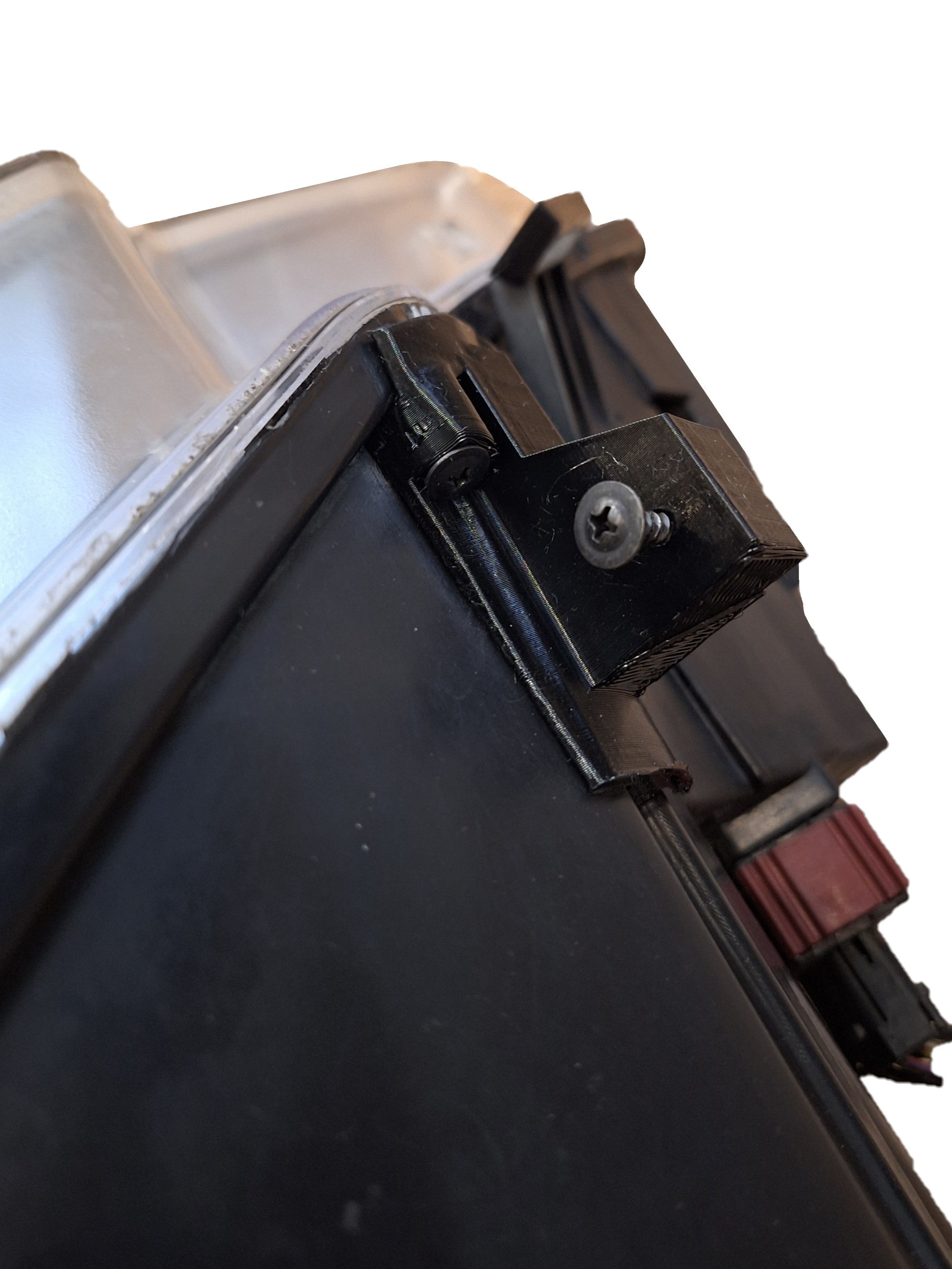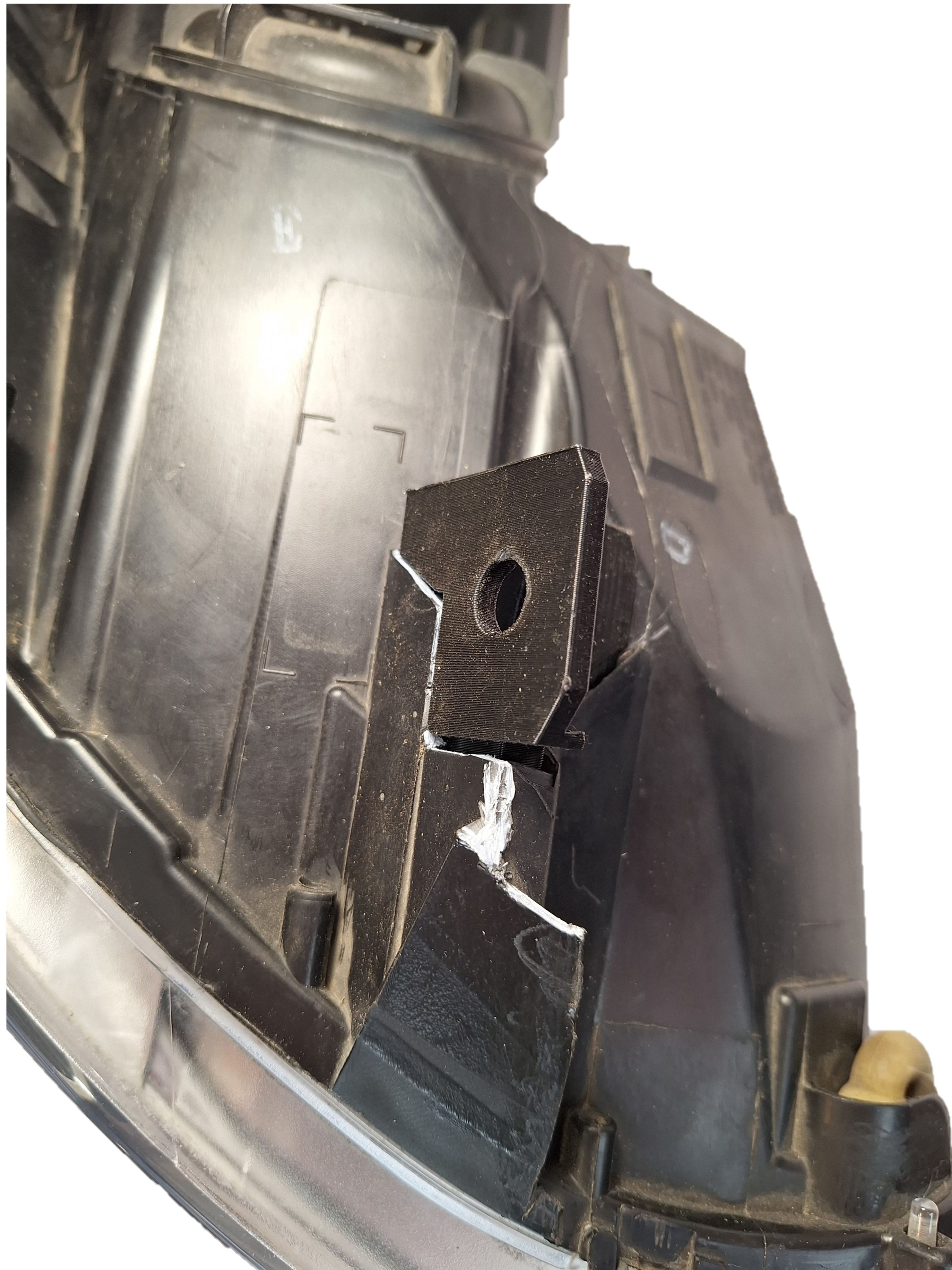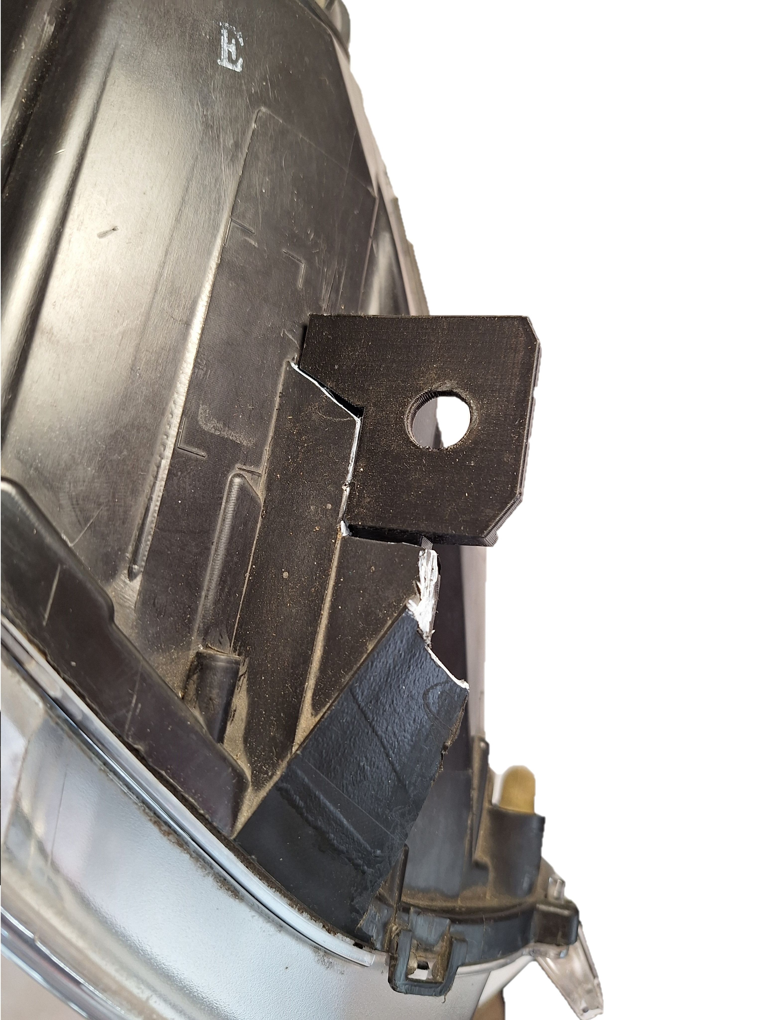Для установки ремонтного кронштейна необходимо удалить поврежденное крепление фары, для чего примерить ремонтный кронштейн к месту установки, срезать мешающие остатки оригинального крепления строительным ножом. Кронштейн устанавливается в заводские посадочные места и фиксируется саморезами.