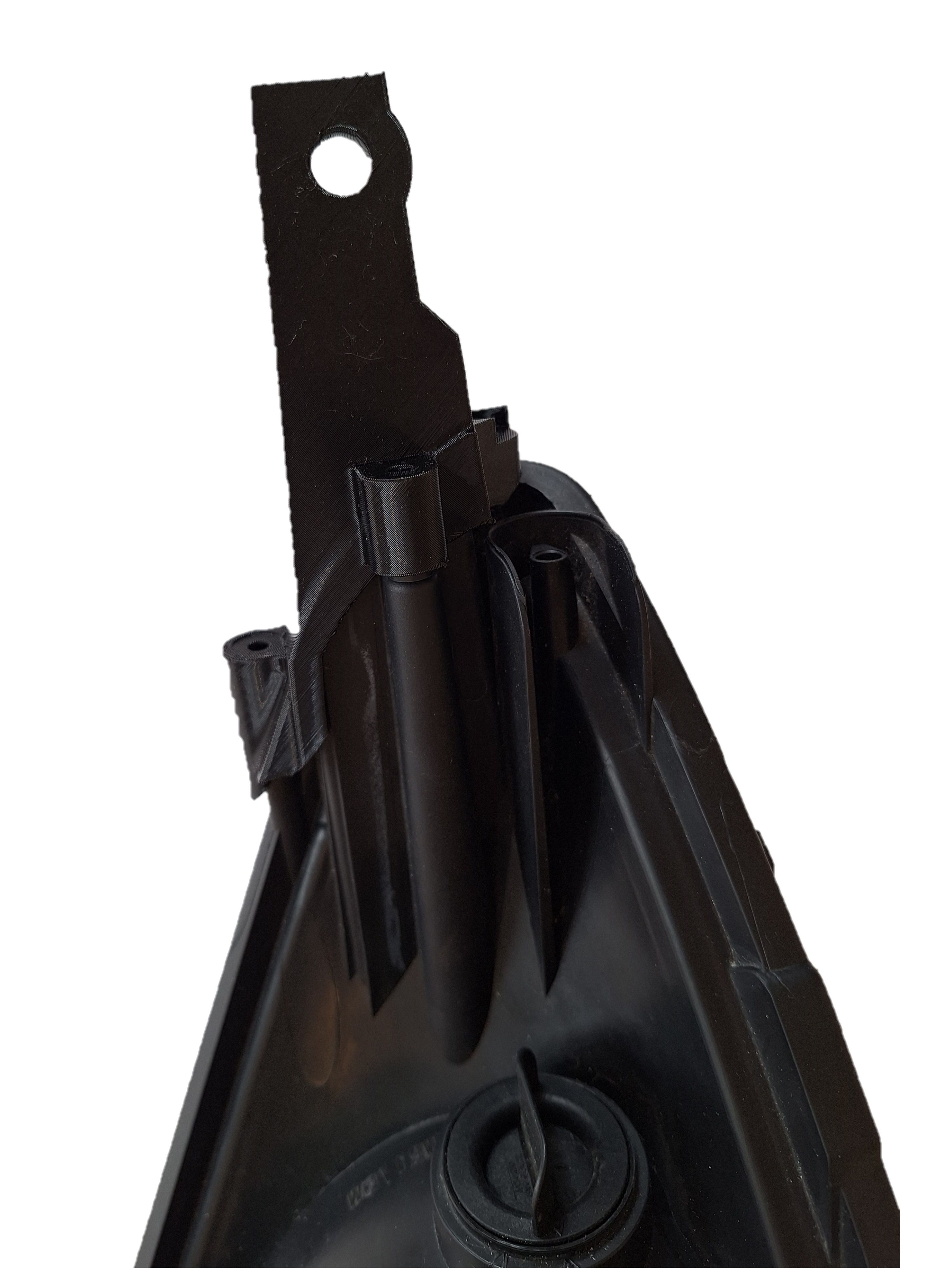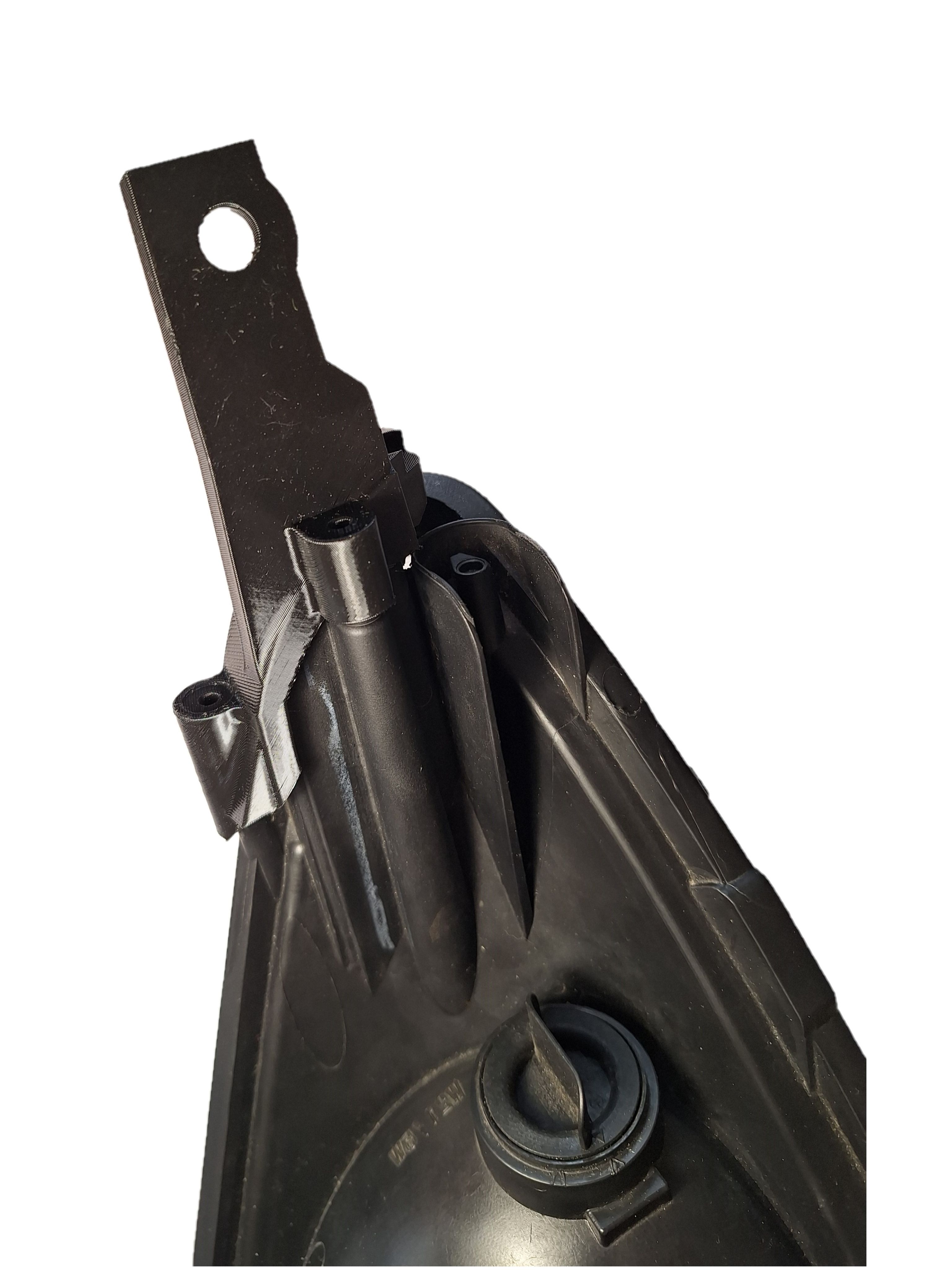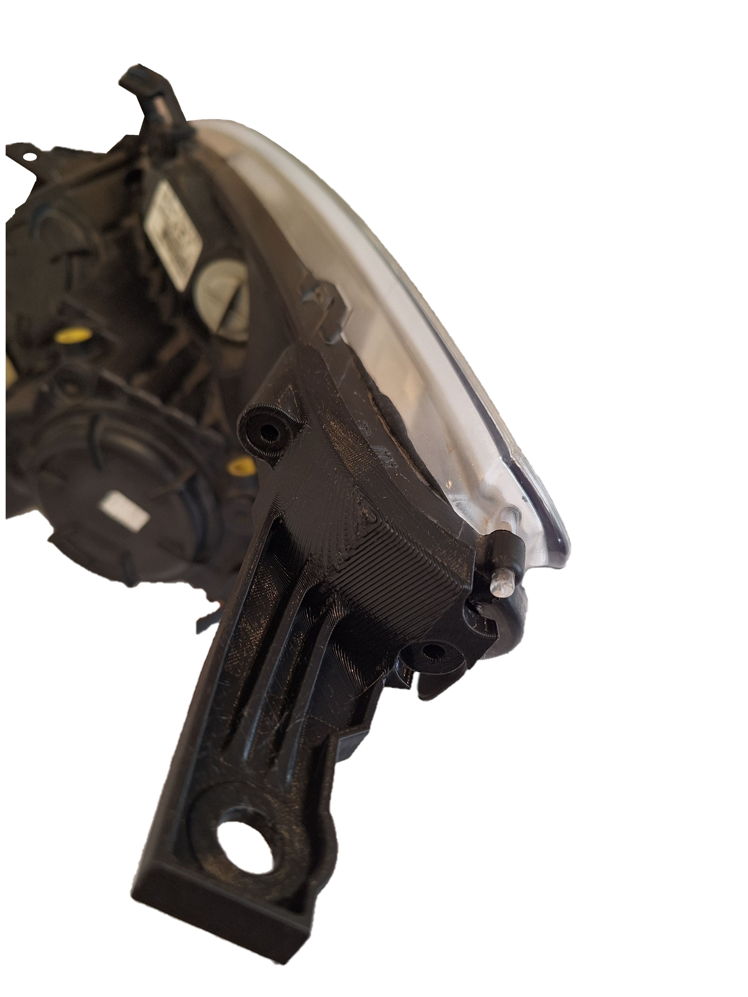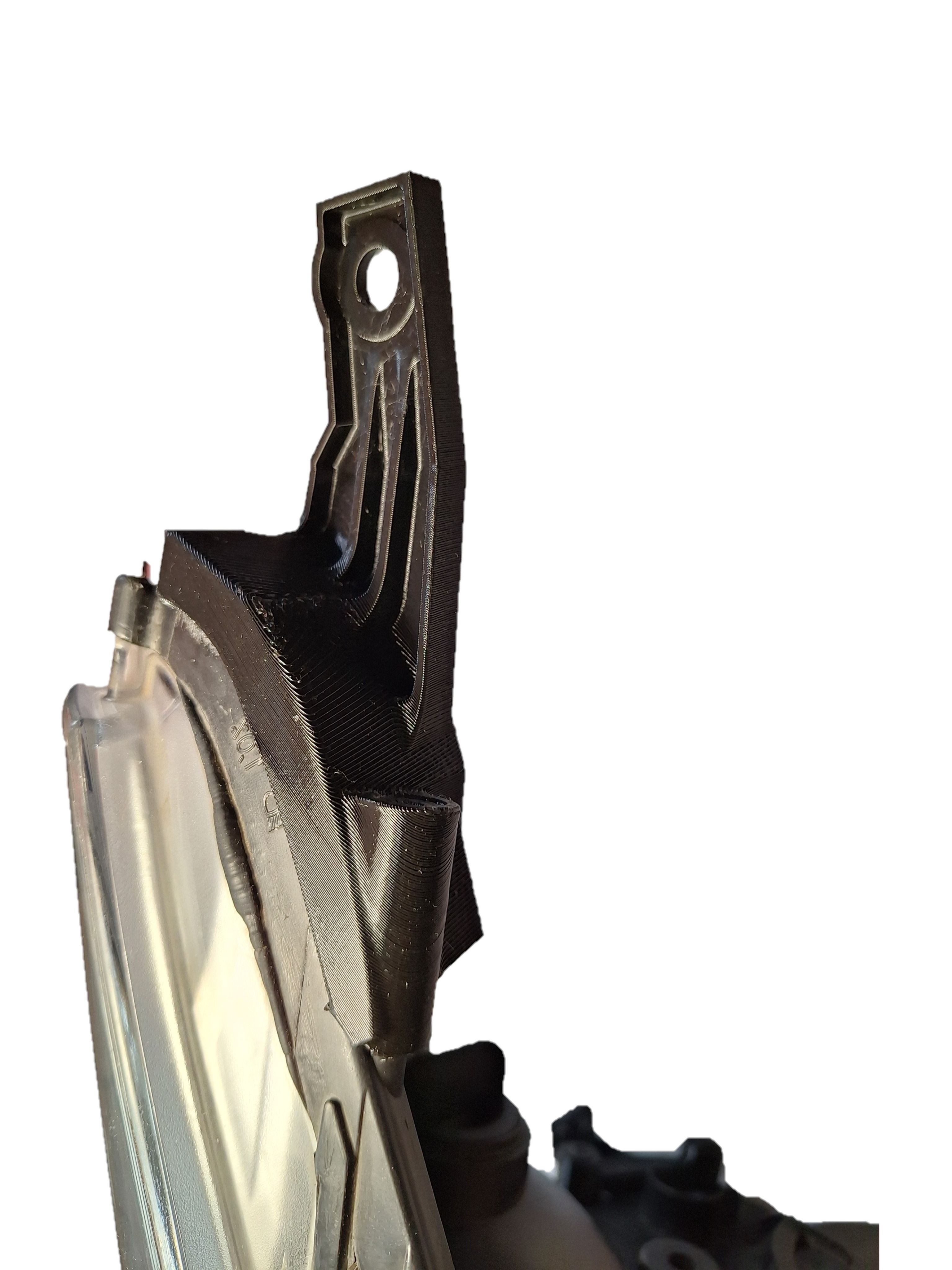 Для установки ремонтного кронштейна необходимо удалить поврежденное крепление фары, для чего примерить ремонтный кронштейн к месту установки, срезать мешающие остатки оригинального крепления строительным ножом. Кронштейн устанавливается в заводские посадочные места и фиксируется саморезами.