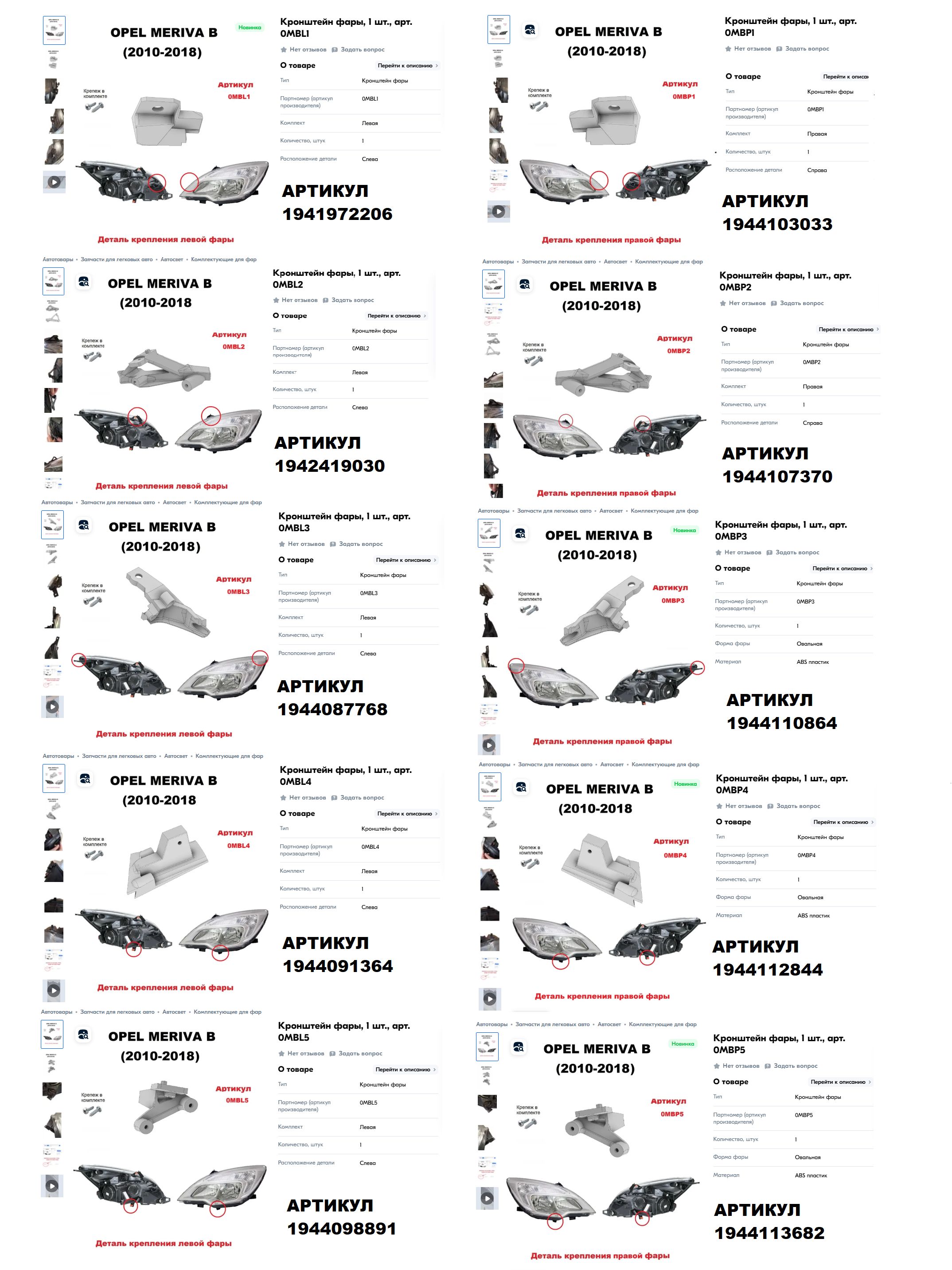 Предназначен для ремонта оригинальной автомобильной фары фары Opel Meriva B (2010 – 2018) года выпуска. Устанавливается в штатные крепежные места, фиксируется шурупами.