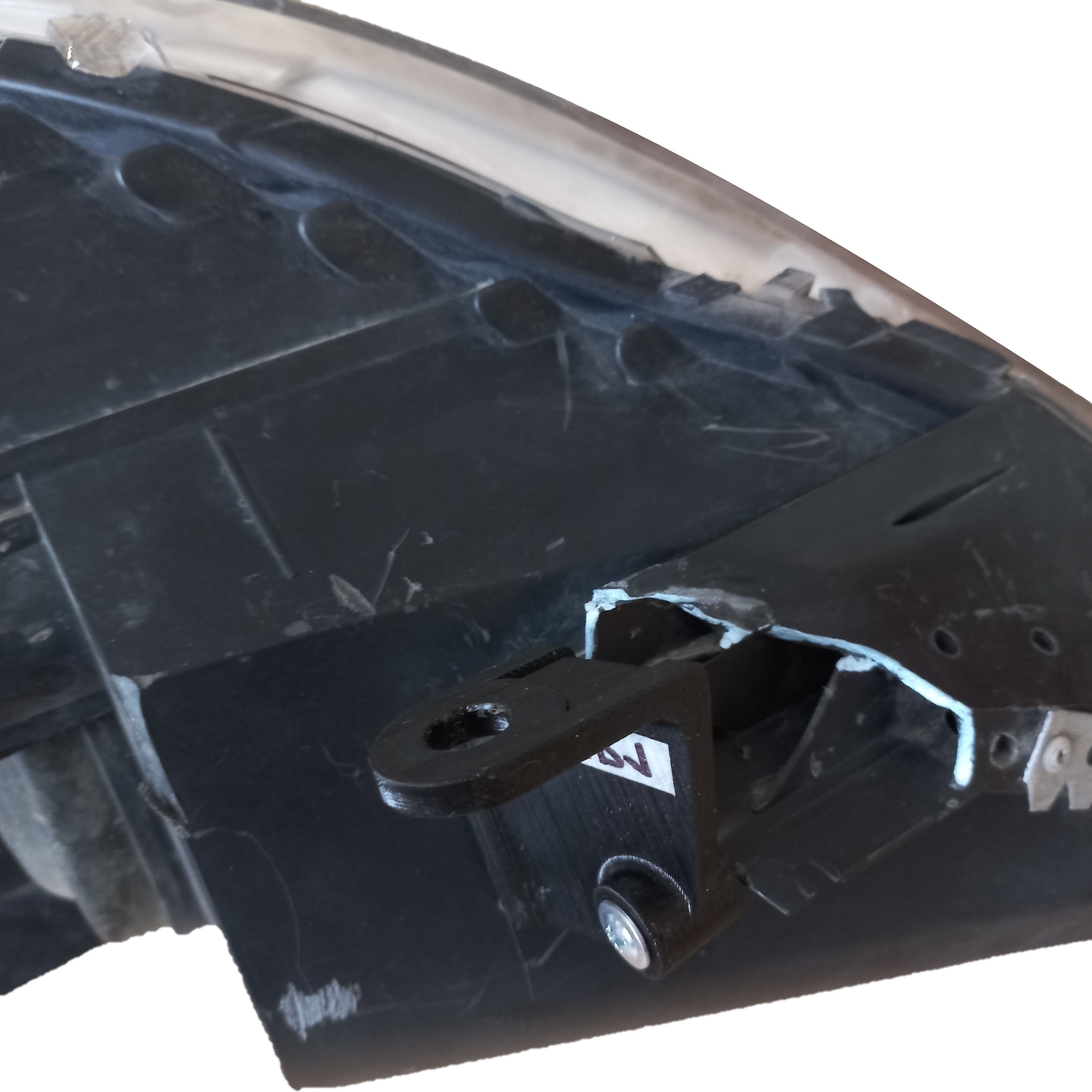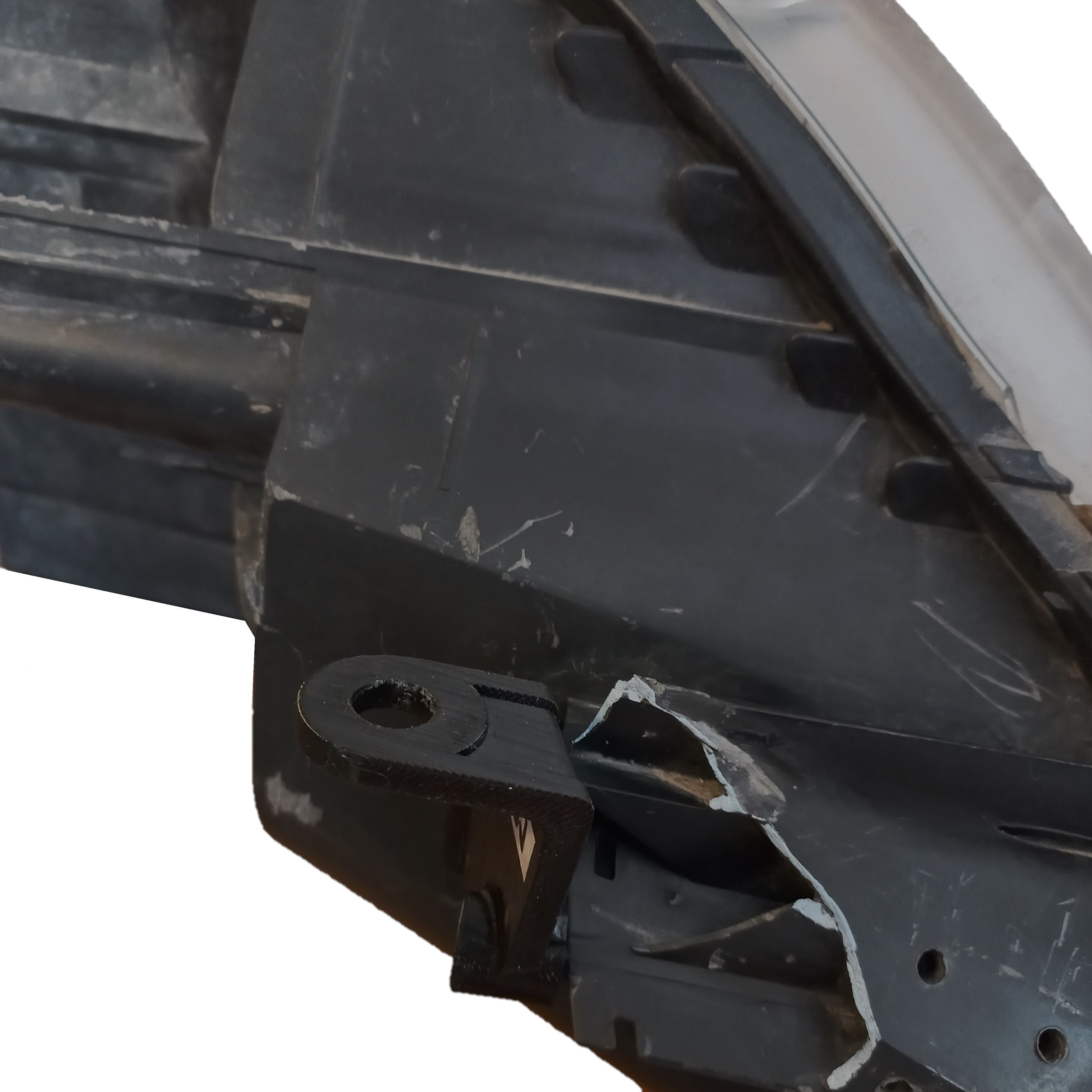 Для установки ремонтного кронштейна необходимо удалить поврежденное крепление фары, для чего примерить ремонтный кронштейн к месту установки, срезать мешающие остатки оригинального крепления строительным ножом. Кронштейн устанавливается в заводские посадочные места и фиксируется саморезами.