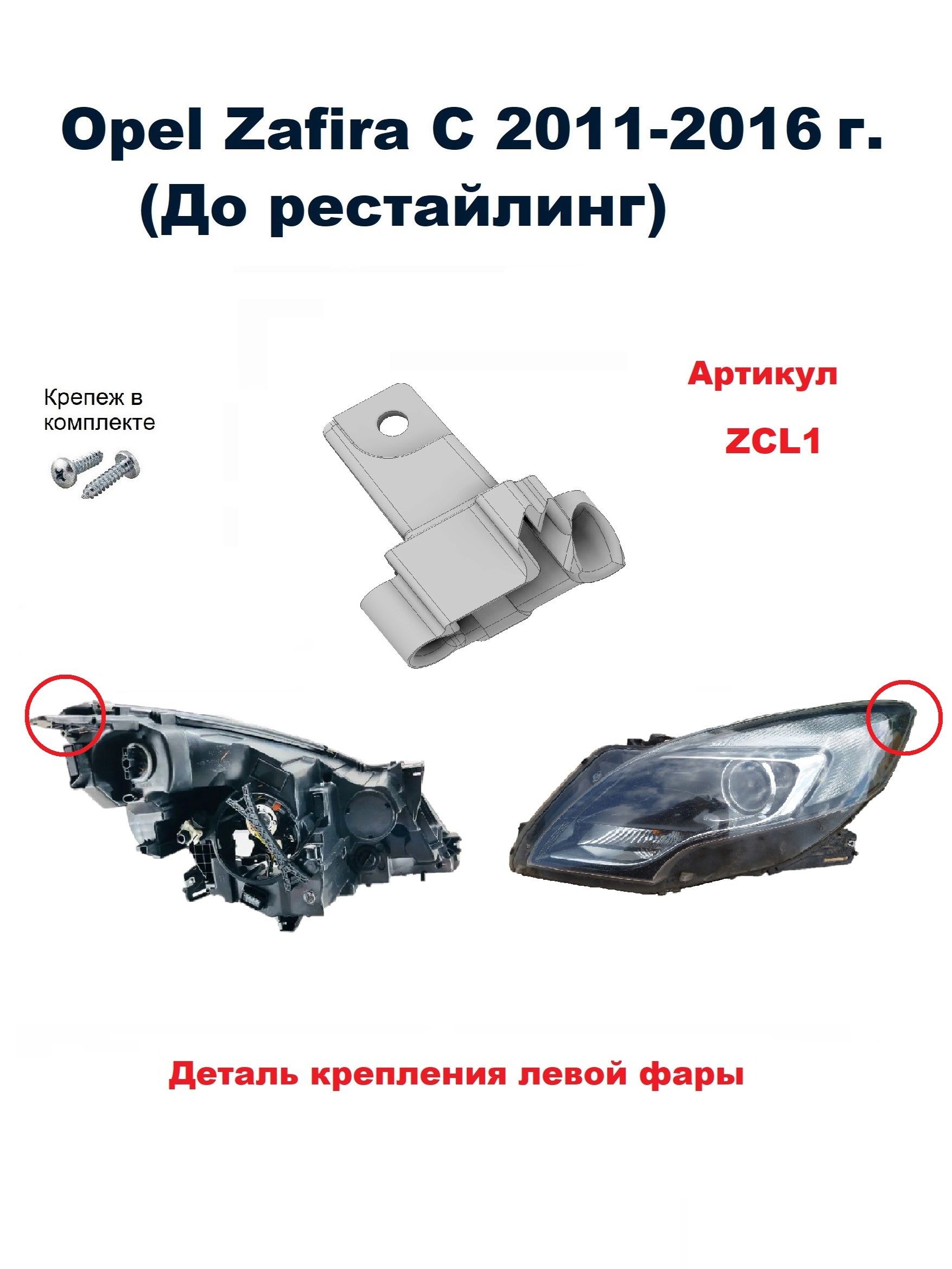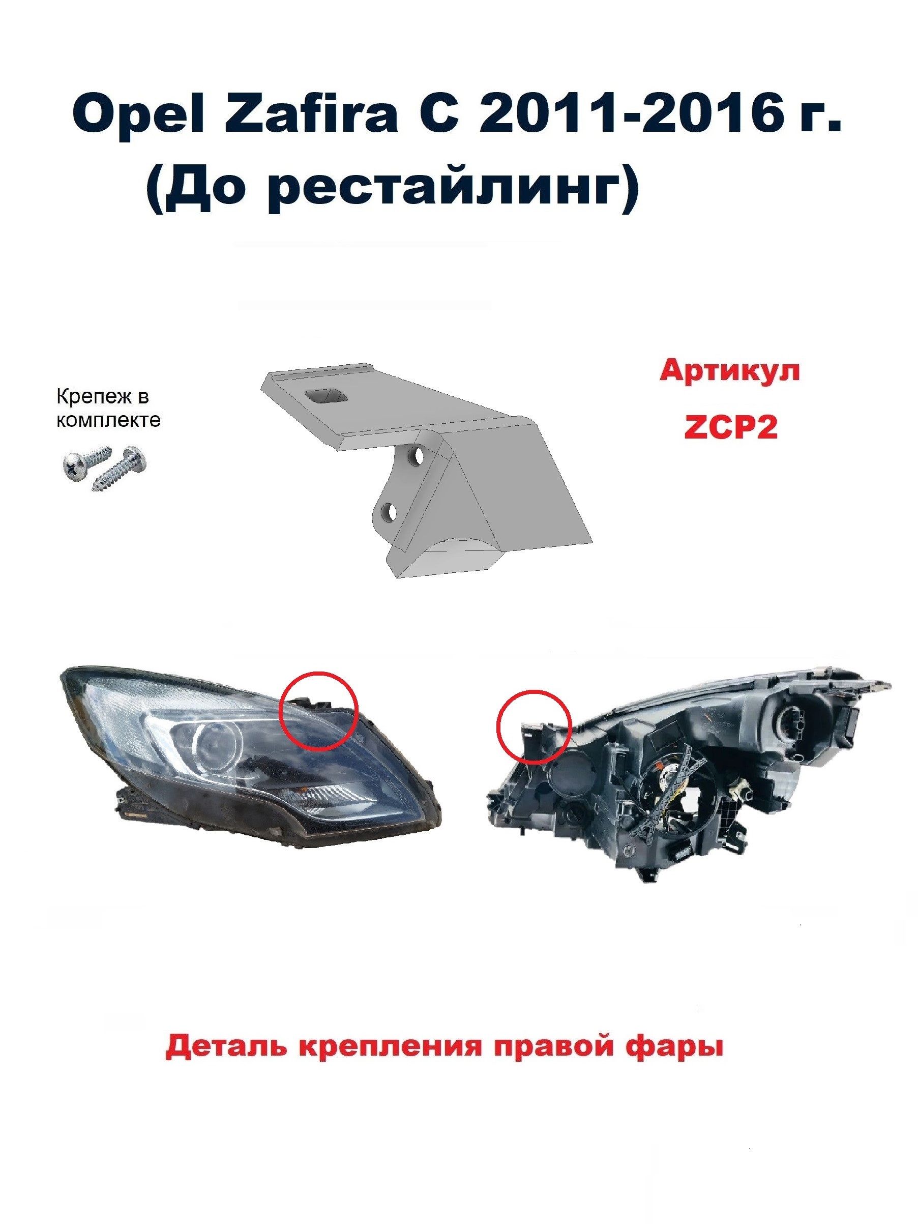 Ремкомплект предназначен для восстановления креплений оригинальной автомобильной фары Opel Zafira C 2011-2016 года выпуска. (До рестайлинг)