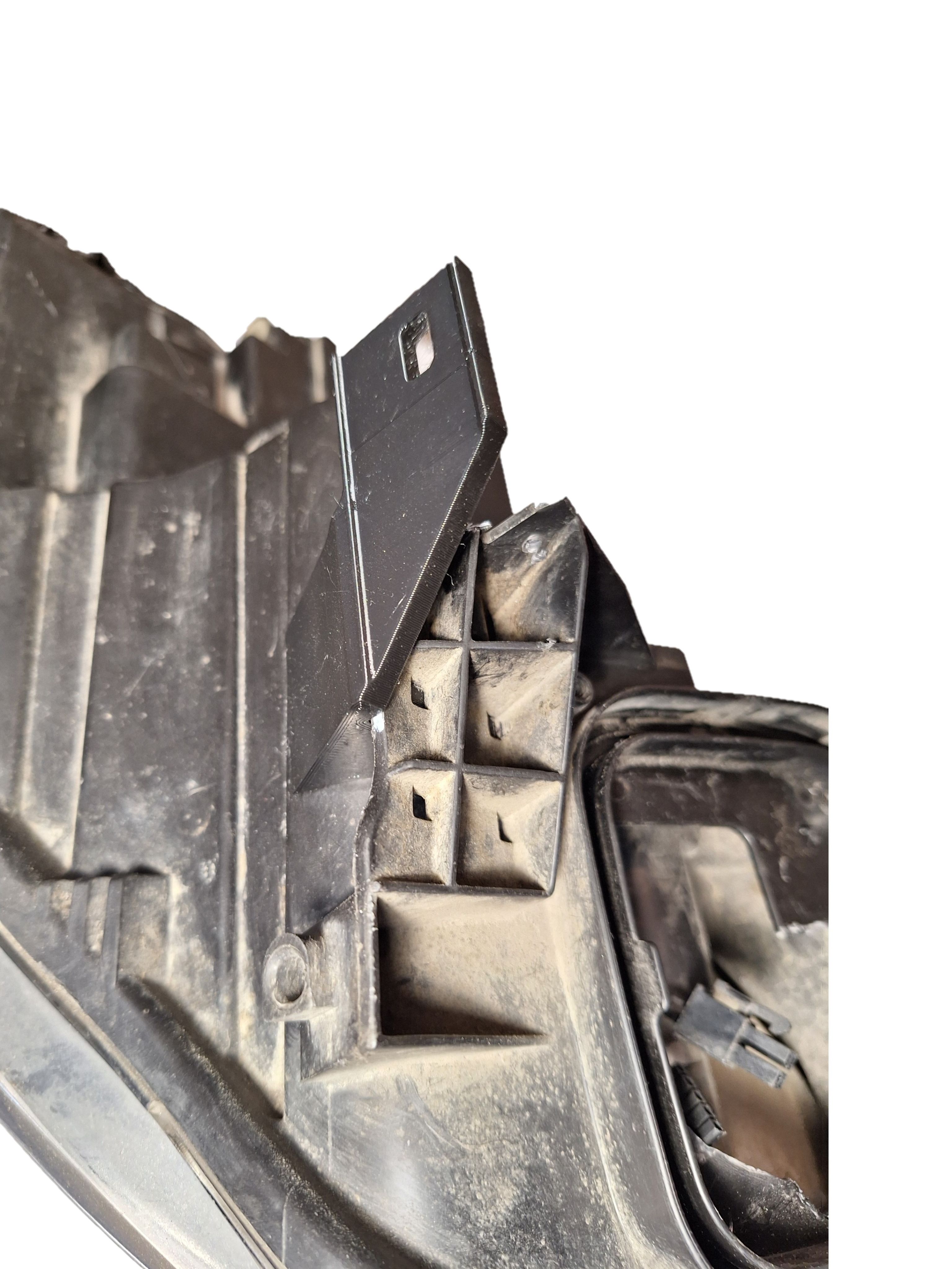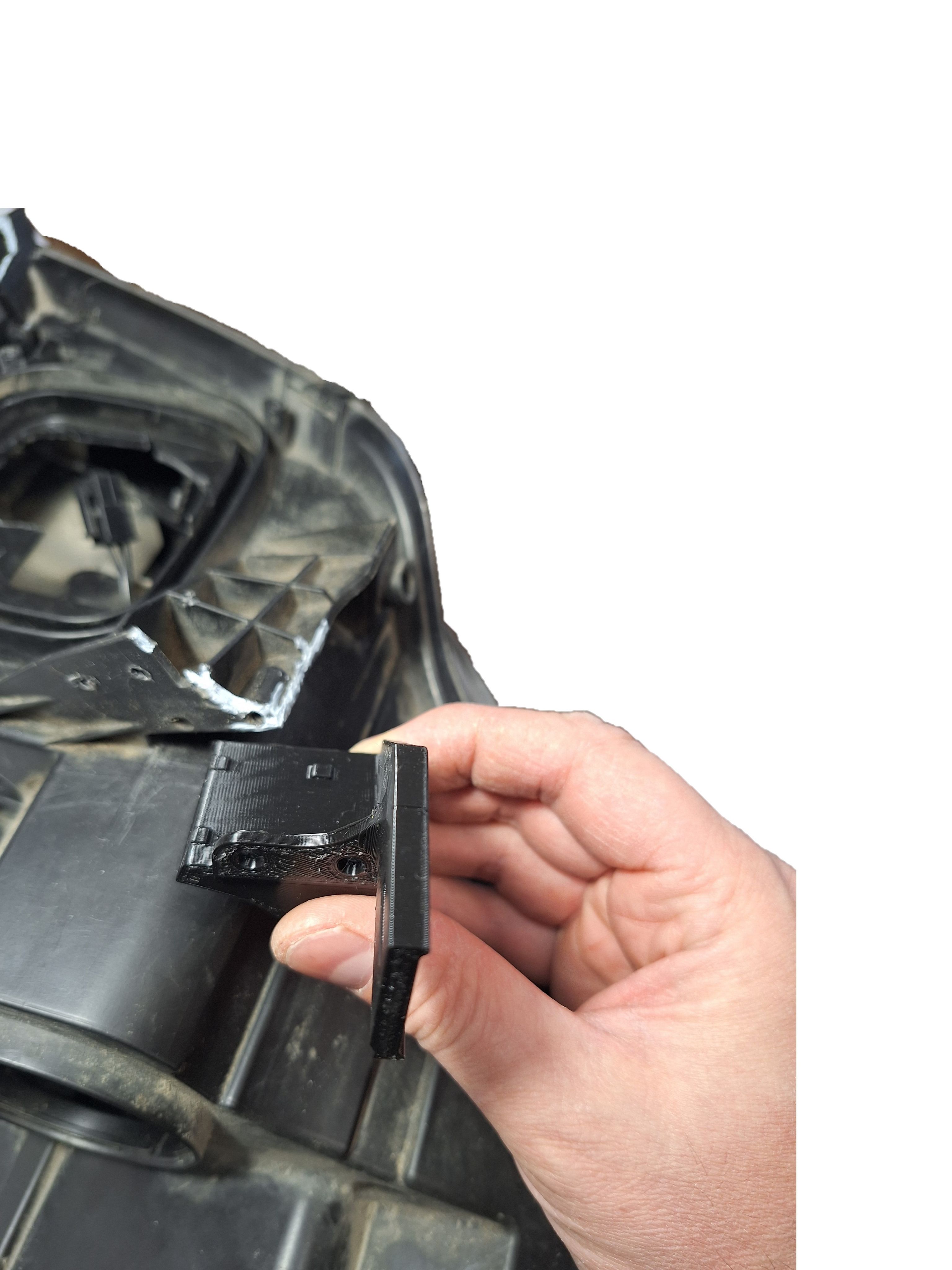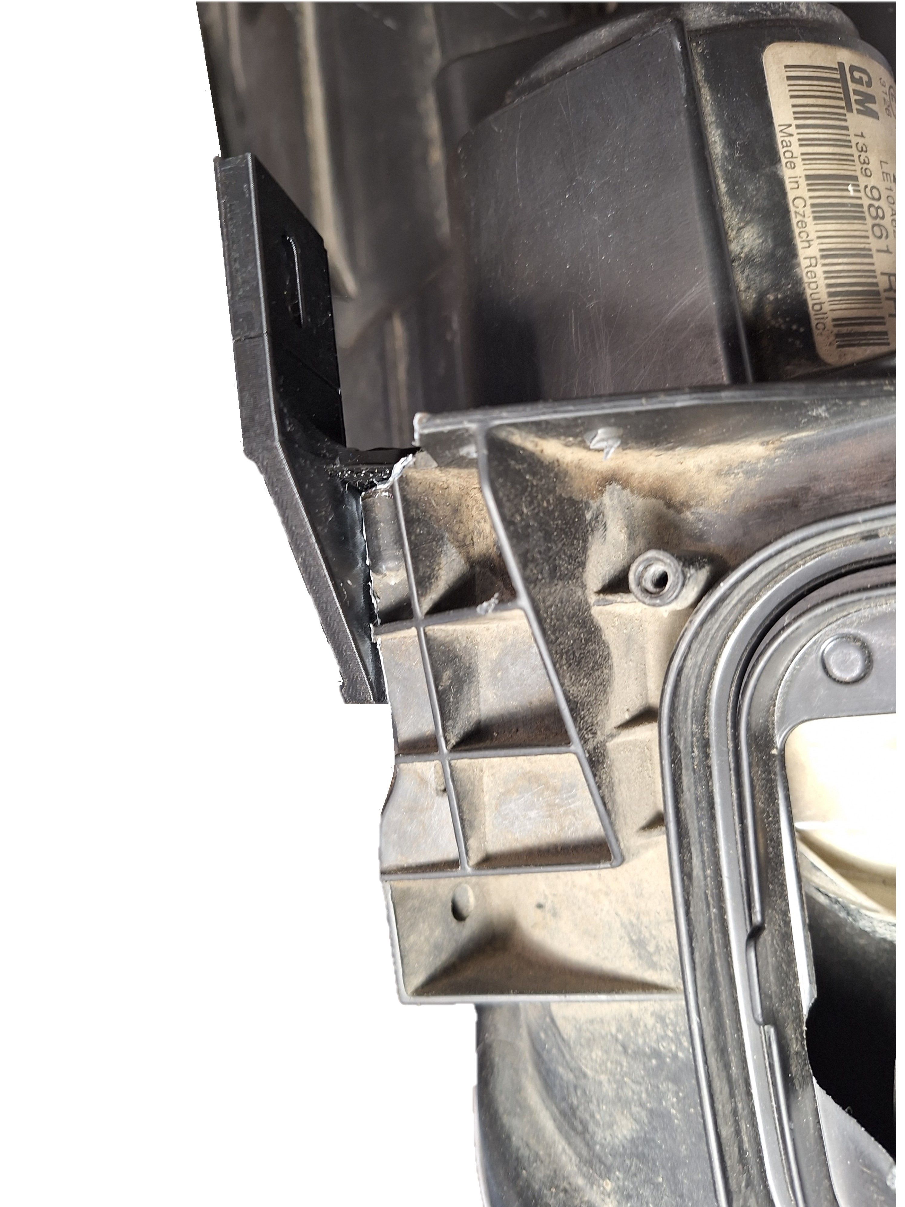 Для установки ремонтного кронштейна необходимо удалить поврежденное крепление фары, для чего примерить ремонтный кронштейн к месту установки, срезать мешающие остатки оригинального крепления строительным ножом. Кронштейн устанавливается в заводские посадочные места и фиксируется саморезами..