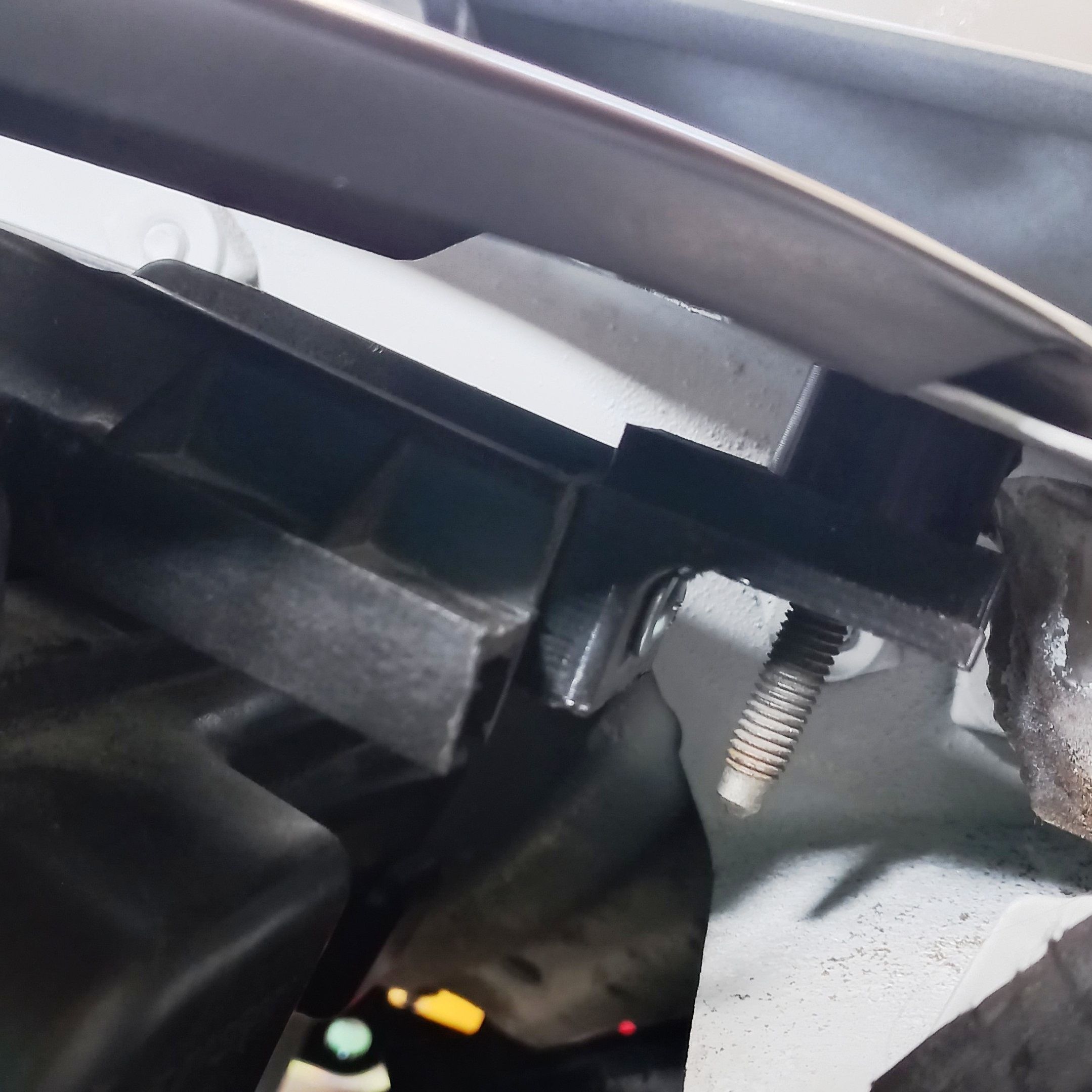 Установка крепления 2. Приложить ремонтное крепление к месту установки, пометить мешающие установке крепления участки сломанного крепежа. Срезать с помощью ножа лишнее. Установить ремкомплект на место, зафиксировать саморезом. Во время установки фары, при необходимости, регулировать посадку фары с помощью регулировочного бочонка